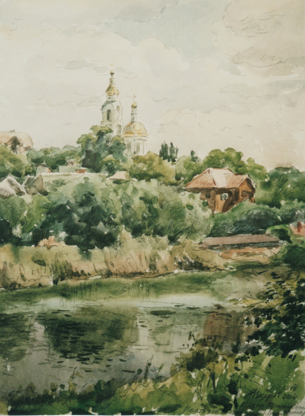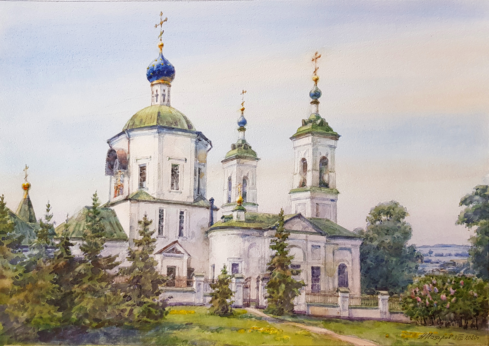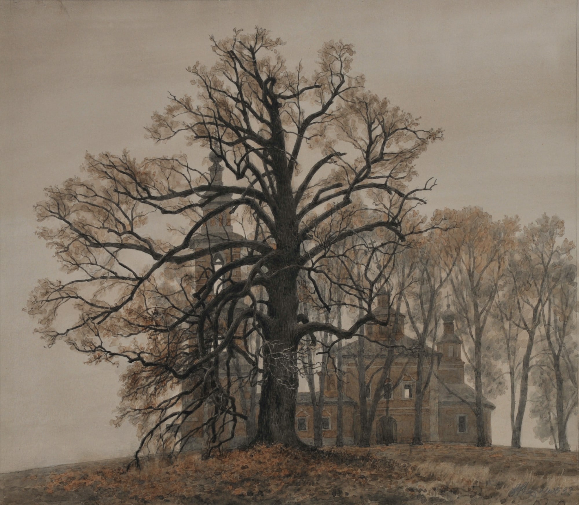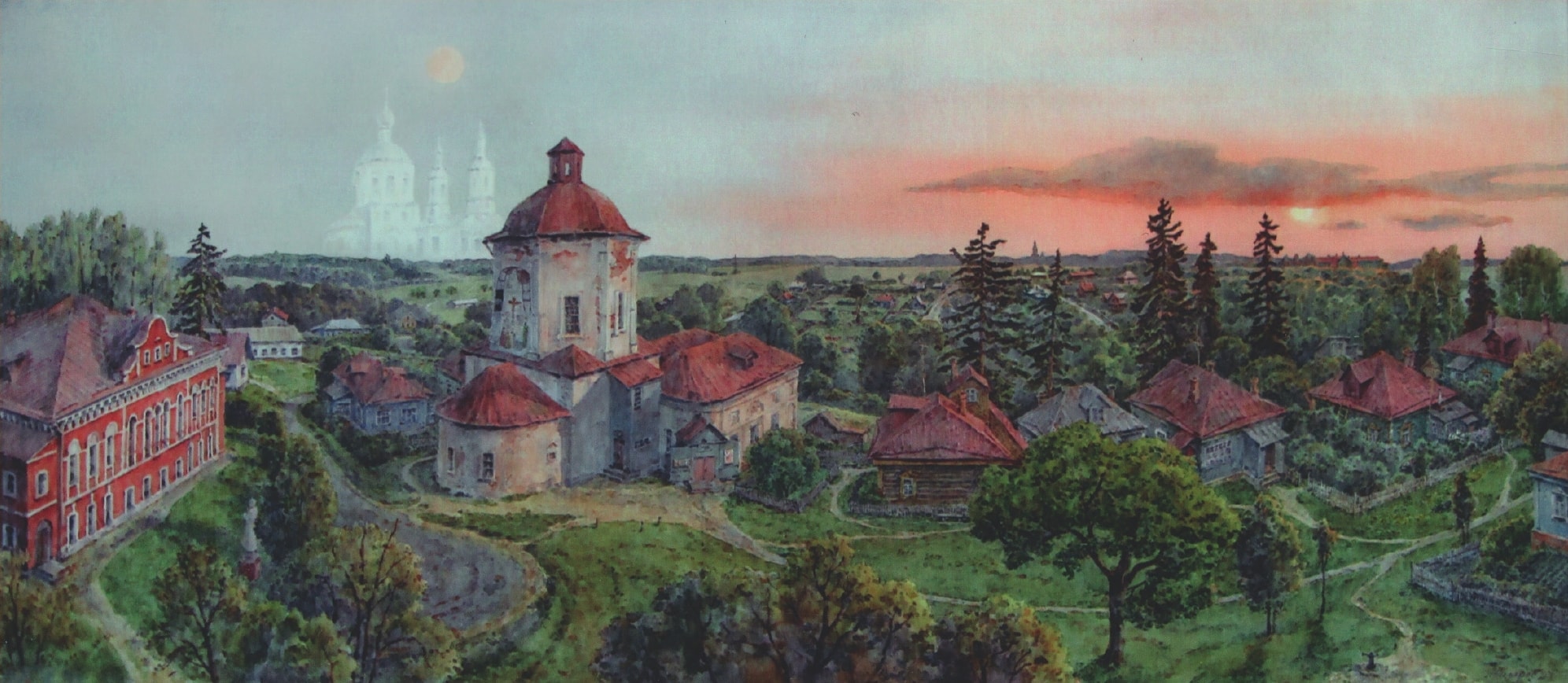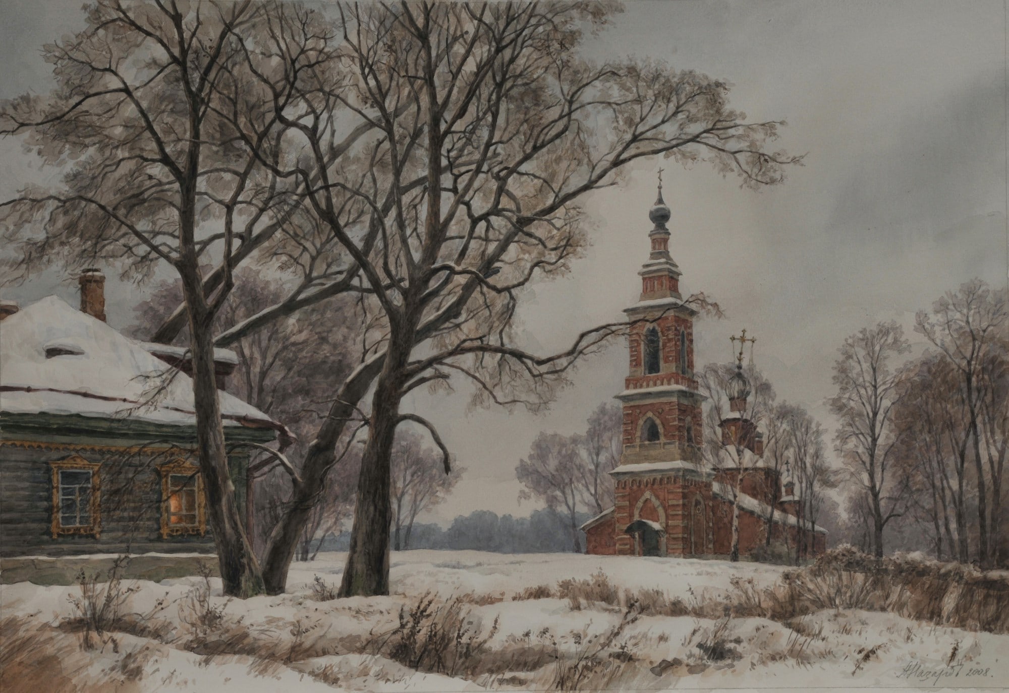 Очень часто, проезжая через обычные российские сёла, первым делом замечаешь горделиво возвышающиеся над местностью церкви и храмы, строго и уверенно обозревающие прилегающие к ним окрестности. Ещё несколько лет назад многие из них напоминали полуразрушенные цитадели или потрепанные линкоры. Те, кто их строил, видимо подозревали, что в борьбе Света с Тьмой испытаний будет предостаточно, поэтому не скупились на толщину стен и основательность сводов. На картинах художника вы увидите и рубцы и шрамы, рассказывающие о нелегком пути России в недавнем прошлом. И слава Богу, что эта линия обороны буквально на наших глазах возрождается на благо Отечества.