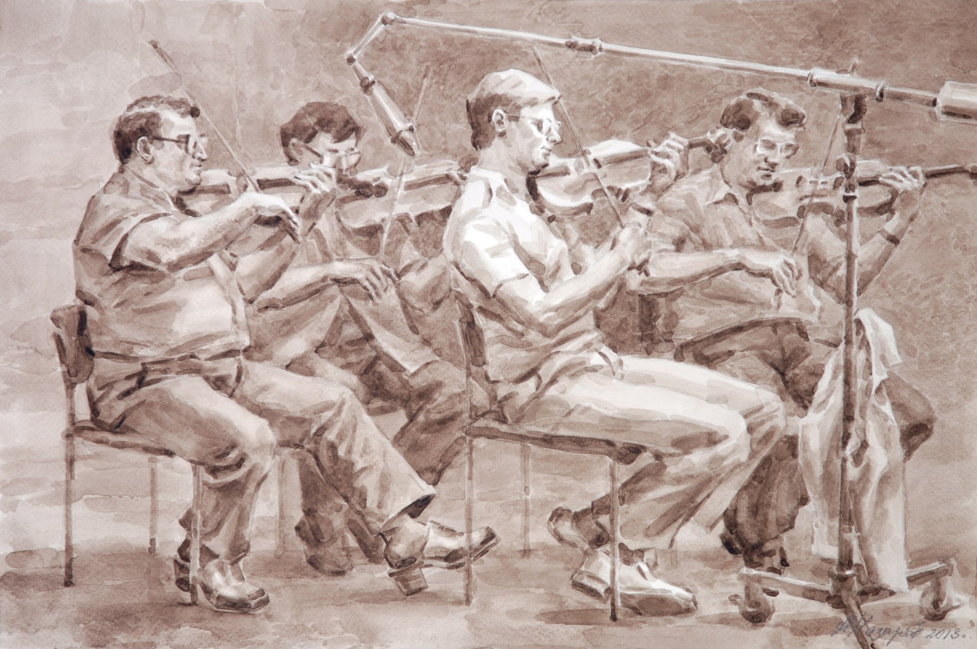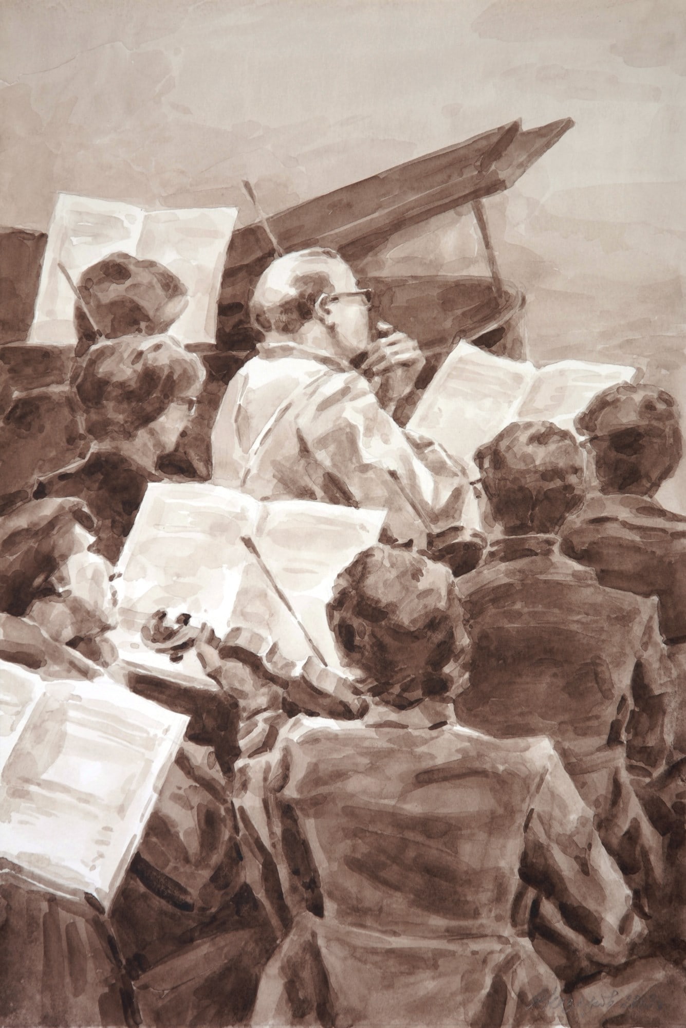 Во все времена чудеса привлекали людей своей «тайной кухней» и особенно процессом превращения обыденности в магию. Исследование и наблюдение внутреннего мира такого невероятного организма, как оркестр, увлекло Александра Константиновича Назарова настолько, что погружение на несколько лет в эту таинственную и закрытую для постороннего взгляда «химию» оказалось неизбежным и привело к созданию целой серии ярких работ, запечатлевших мгновения сотворения чуда.