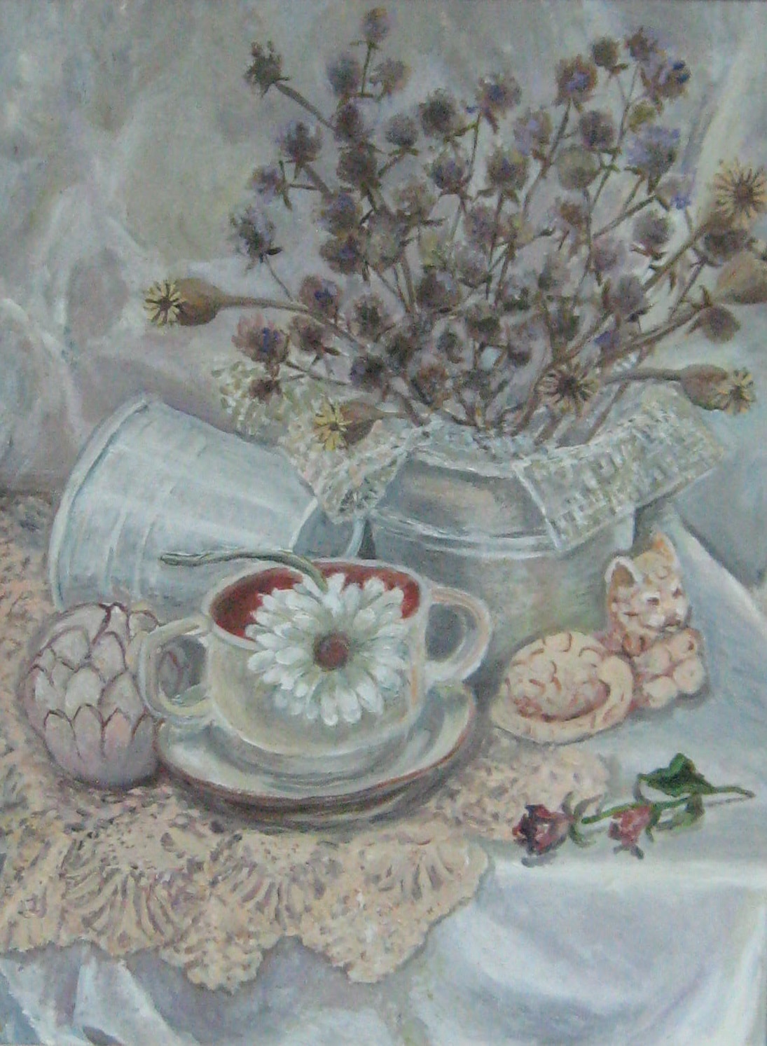 8 октября 2016 г. в Троицке состоялось открытие выставки художников «Арт-студии» А.К. Назарова «Осенний вернисаж». В Троицком Центре культуры и творчества представлены самые интересные работы, созданные в 2013-2016 годах, главным образом это творения учеников Александра Константиновича, а также три работы самого мастера. Среди более, чем сорока полотен можно увидеть не только натюрморты и пейзажи, выполненные традиционными акварелью или маслом, но и портрет работы Назарова, а также необычные композиции с использованием нетрадиционных техник живописи. Ниже представлены фотографии нескольких полотен с вернисажа, а чтобы увидеть их воочию, рекомендуем посетить ТЦКТ. Выставка продлится до 27 октября.
