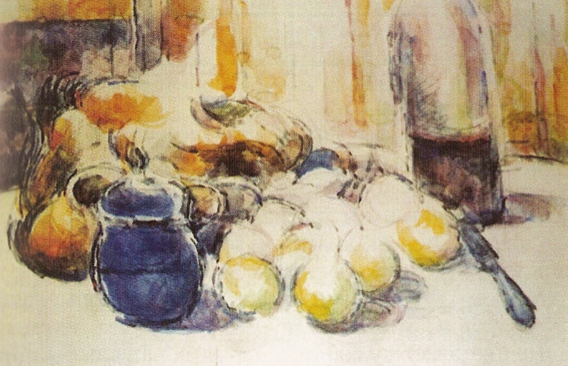 Название способа указывает на его происхождение. Известно, что Поль Сезанн, помимо масляной живописи, охотно и очень успешно писал акварельными красками. Сохранились очень интересные акварели художника. Одни, как «Облокотившийся курильщик», написаны буквально двумя цветами: сине-пепельным и охрой красной. В других он немного расширяет свою палитру до трех цветов - зеленого, охры красной и желтой, оставляя как основу сине-пепельный цвет. В своих работах Сезанн опирался на один из трех принципов Поля Синьяка, который заключался в том, чтобы никогда не накладывать одну краску на другую, так как любой положенный поверх другого тон выцветает. Но в последние годы П. Сезанн, продолжая страстно увлекаться акварелью, писал совершенно по-другому. Он перекрывал один цвет другим, затем третьим и так далее, используя при этом основные цвета - синий, красный, зеленый и желтый, примешивая к ним в небольшом количестве черный цвет, с помощью которого делал незначительные штриховые акцепты поверх мазков. Самое главное, что П. Сезанн не смешивал основные цвета между собой, а использовал как бы принцип наложения друг на друга цветных стекол. Вот что писал об этом Эмиль Бернар в 1904 году: «Он начинал с легкой тени, наносил пятно, покрывал его другим, большим пятном, затем третьим, пока все эти цветовые градации, перекрывая друг друга, не вылепливали цветом форму предметов» (Поль Сезанн и русский авангард начала XX века: Каталог/Науч. ред. А. Г. Костеневич. СПб., 1998. С. 132).