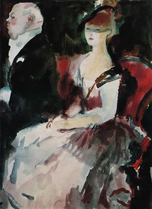 Кое-где художник вносил цветовые акценты на высохшей поверхности предыдущего слоя, порой совсем незначительные, почти точки, чтобы подчеркнуть форму или цветовое пятно. В портретах чаще всего акцентируются глаза и губы. В некоторых работах видно, как художник, взяв активный цвет, который на первый взгляд выбивается из общего тона листа, наносил на его поверхность широкий мазок трепетным движением кисти.