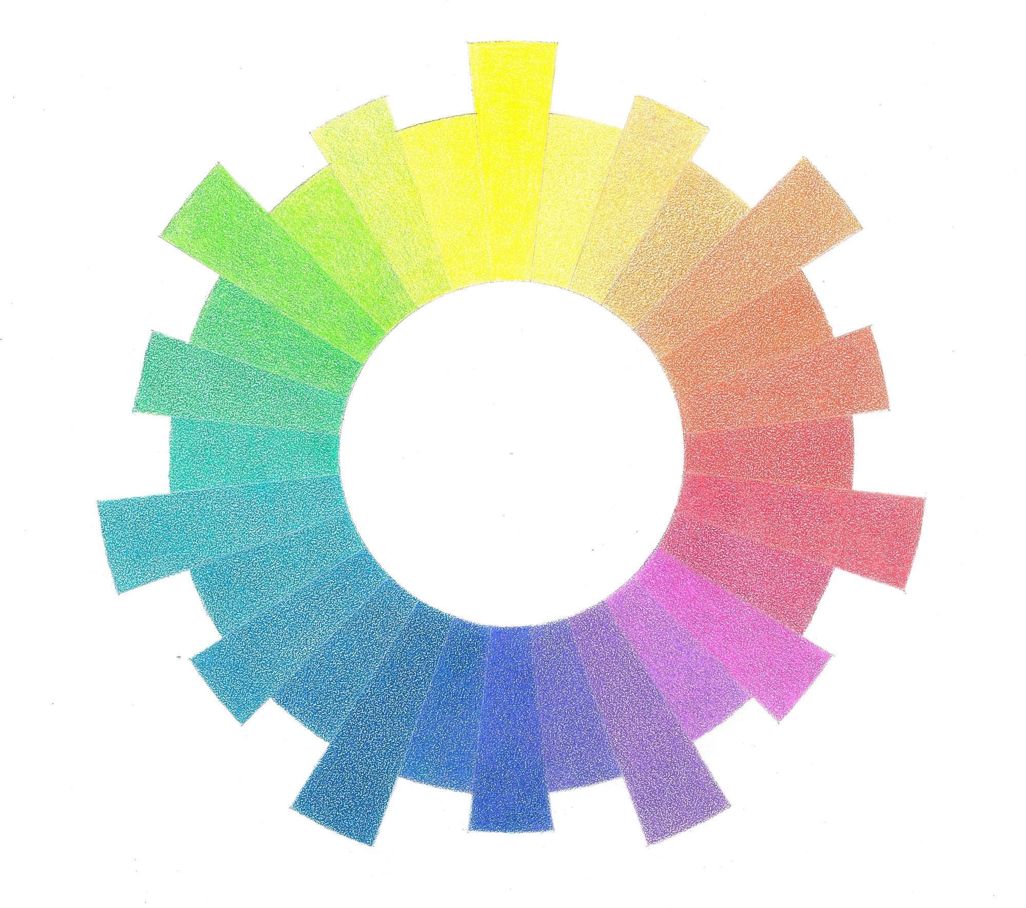 Между основными цветами можно расположить бесчисленное множество оттенков, но есть при этом разумные ограничения. Разные авторы работ по цветоведению выбирают свой, наиболее удобный вариант круга. Швед Оствальд, например, строит свой круг на основе восьми цветов, располагая пурпурный цвет между красным и фиолетовым. Иногда используют шесть цветов, убирая голубой, якобы несуществующий в природе. Также, и количество промежуточных цветов у разных авторов берется по разному. Мне же кажется, что в основе цветового круга должно быть семь цветов, как это существует в цветовом спектре.